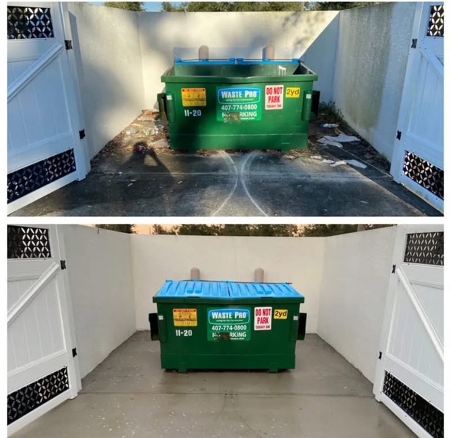 Dirty dumpster pads create odors, stains, and bacteria that can hurt your business and turn people away. Our soft washing dumpster pad cleaning service safely removes grease and buildup, then sanitizes the surface to eliminate odor-causing bacteria. We finish with a fresh scent application, leaving your dumpster area clean, sanitary, and smelling better - so your property looks professional and stays welcoming.